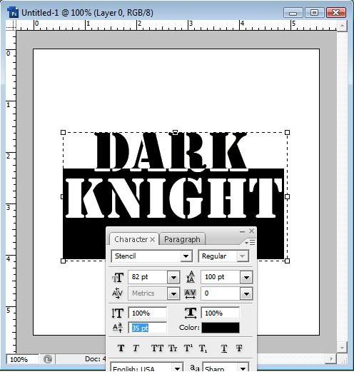 Chúng ta sẽ làm phần còn lại với layer text đầu tiên. Chọn layer DarkKnight